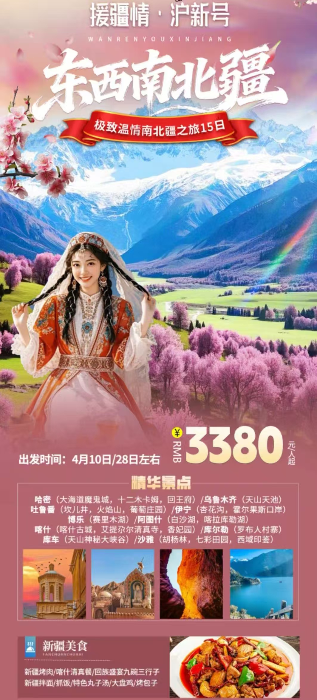 • 6-9月【西域三十六国】哈密(大v道、回王府、十二木卡姆Q?乌鲁木齐 (天山天池)/吐鲁?(坎儿井、火焰山、葡萄庄?/北屯Q喀Ux、禾木、五彩WQ?博州 (赛里木湖) /伊宁 (霍尔果斯口岸、那拉提) /库尔?|布人村?/库R (天山秘大?/沙雅Q沙雅胡杨林、七彩田园、西域印_/阿图什(白沙山、卡拉库勒湖Q喀什Q喀什老城、艾提尕清真寺、香妃园) /兰州Q黄x亲雕塑、水车博览园、水墨丹霞)南北疆空调专?8日游Q可自由选择I越独库公\中南D?巴音布鲁克)